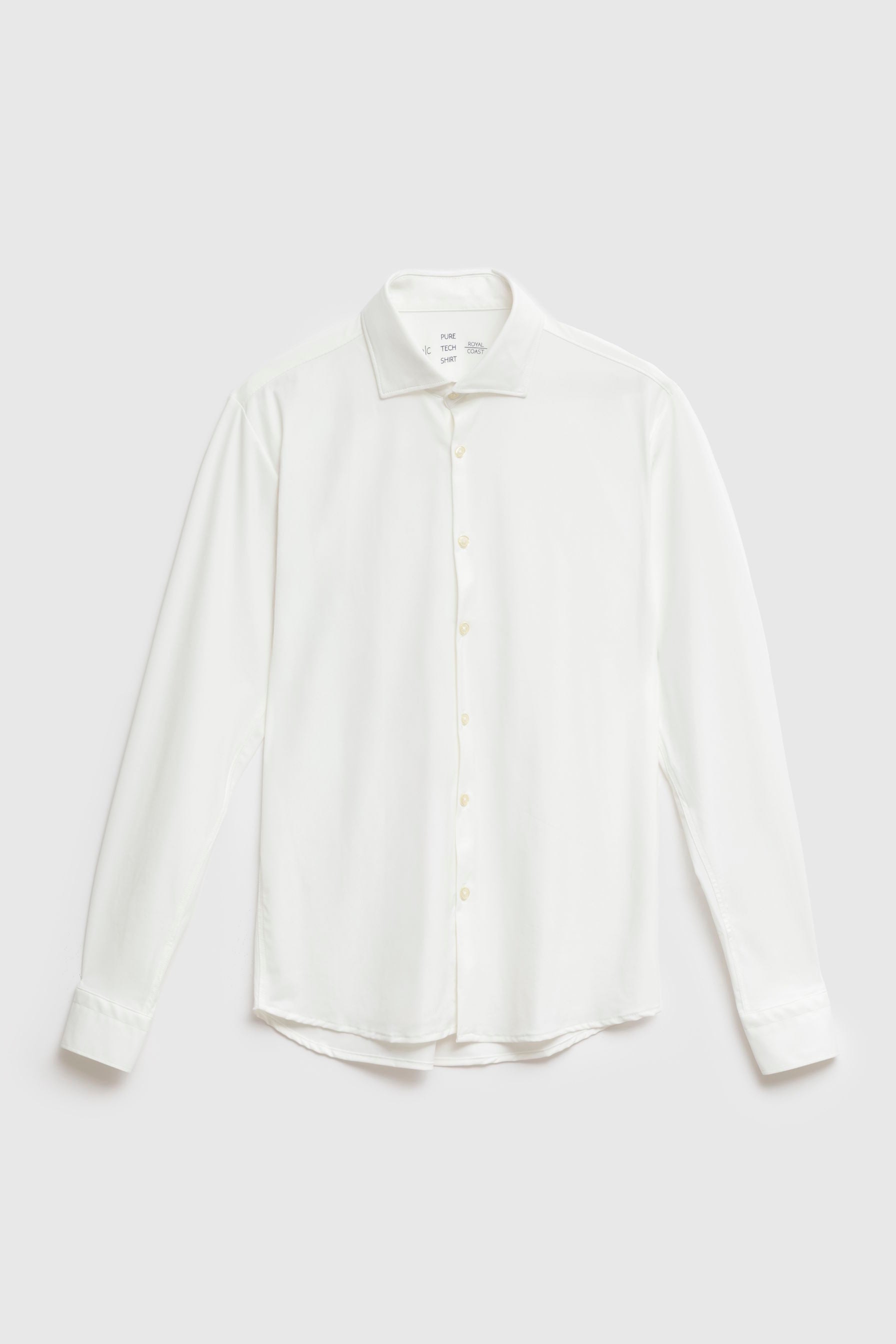 Camicia in tessuto tecnico stretch con collo classico piccolo