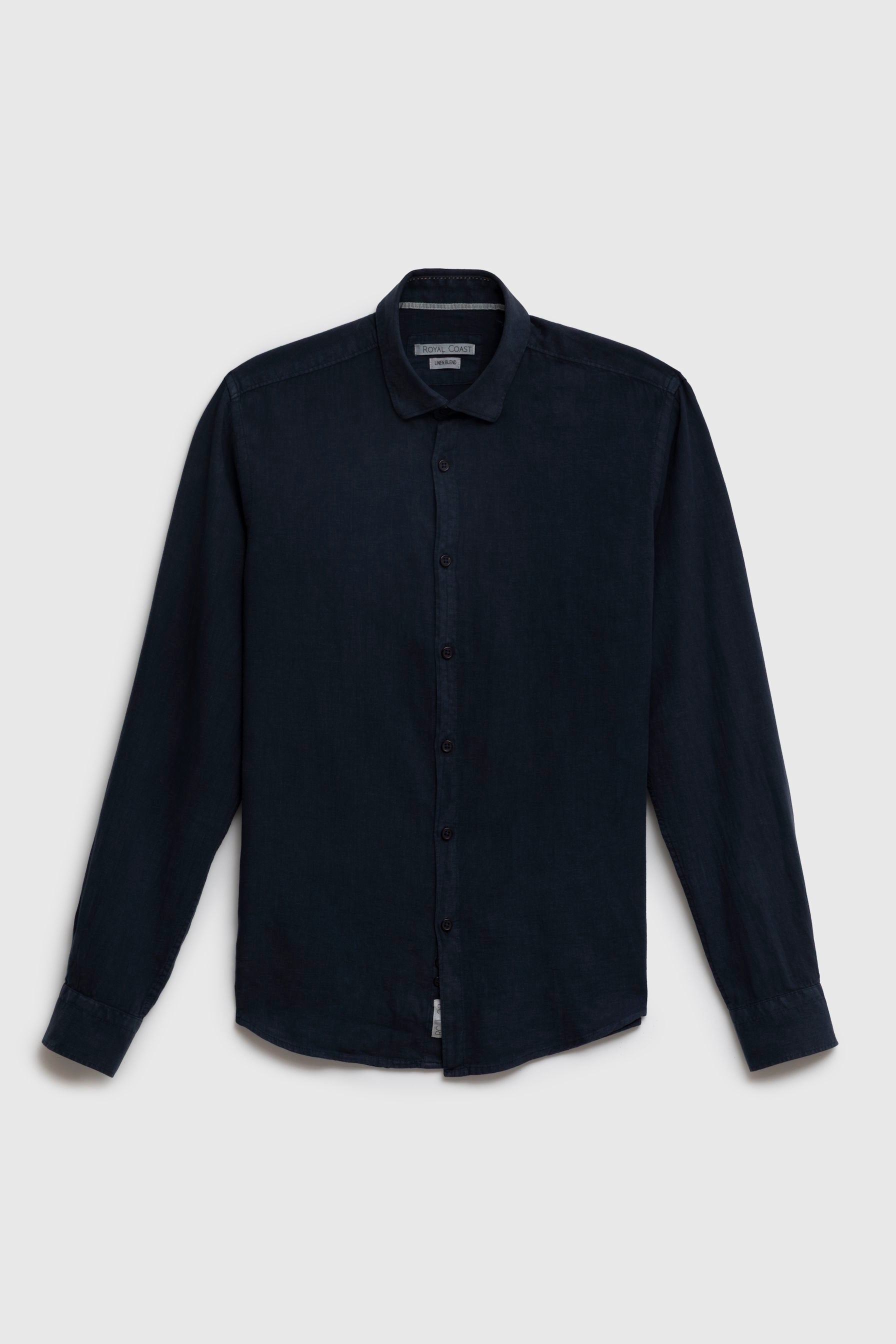 Camicia in Lino Viscosa Tinto Capo con Collo Clip Down